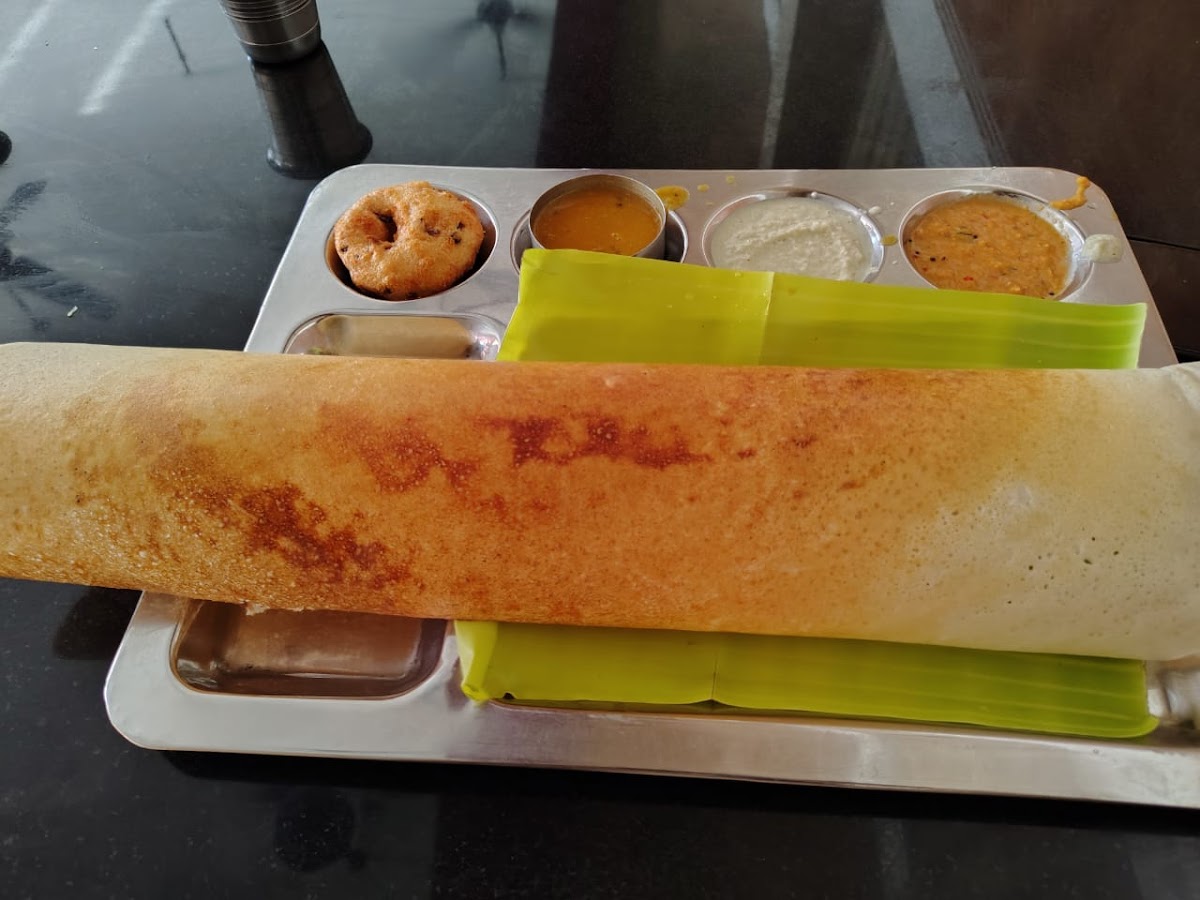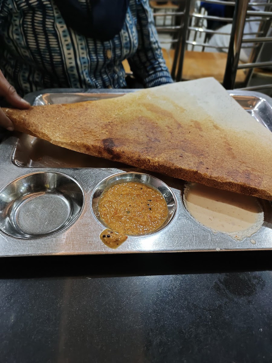 We stopped by this vegetarian spot for lunch where I tried the Masala Dosa (₹80), Curd Rice (₹80), Meals (₹110) and Vada (₹15). The food was decent but nothing extraordinary. The ambiance is quite ordinary and functional. There’s convenient parking right in front of the shop.